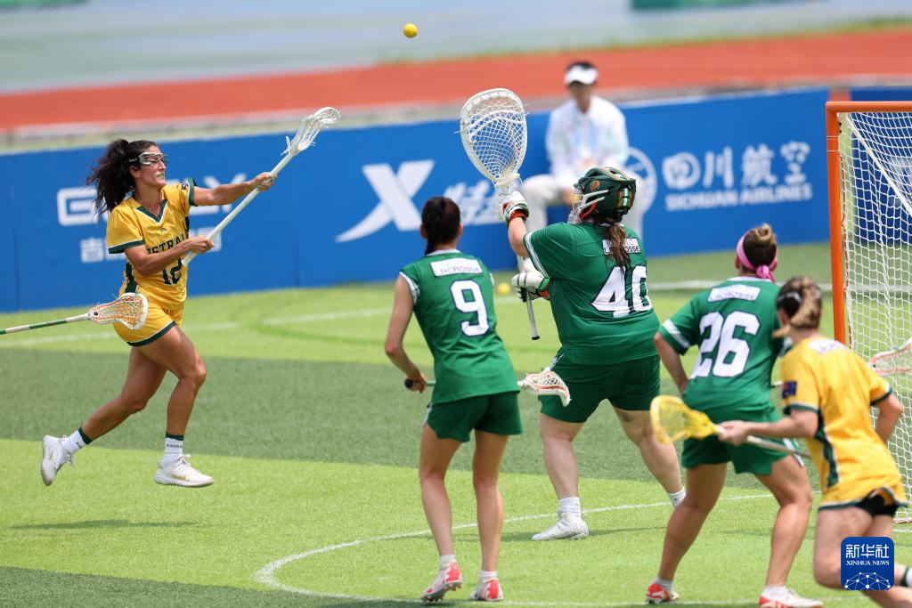 当日,在成都七中东部学校田径场举行的2025年成都世运会女子棍网球B组预赛中,澳大利亚队18比7战胜爱尔兰队。