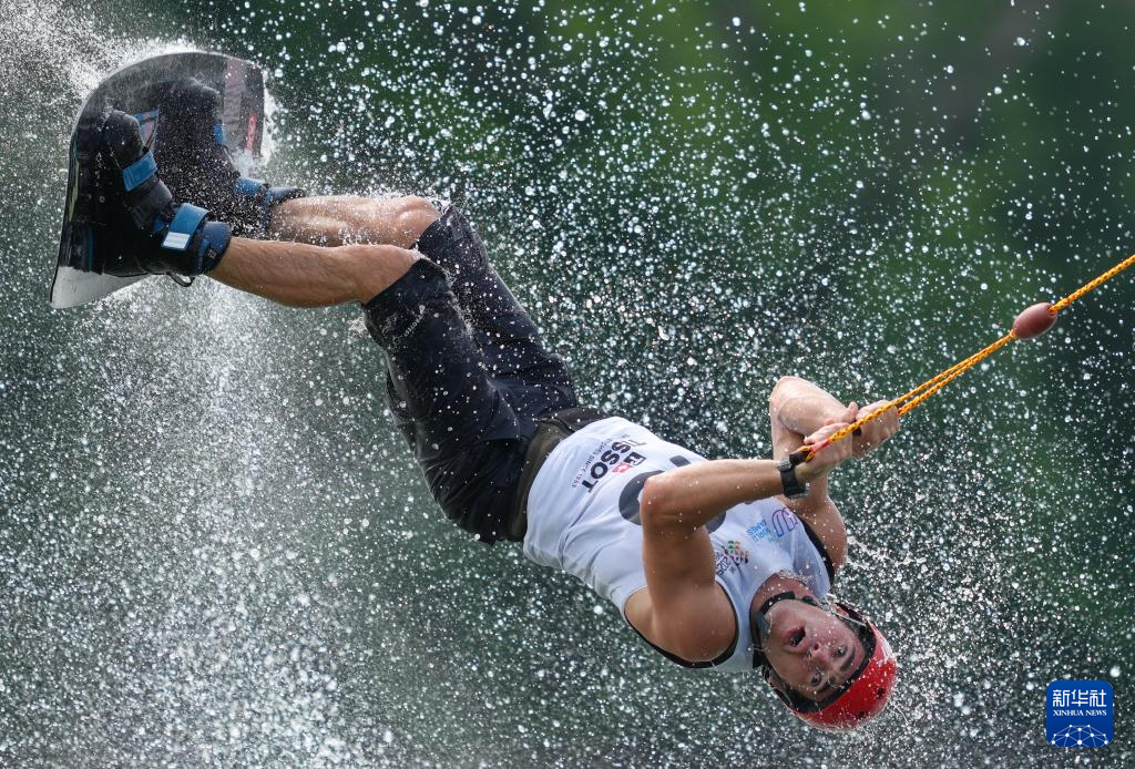 当日,2025年成都世运会男子索道滑水半决赛举行。