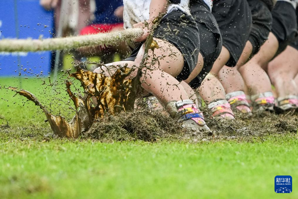 当日,2025年成都世运会女子室外拔河500公斤比赛在东安湖体育公园中央广场举行。