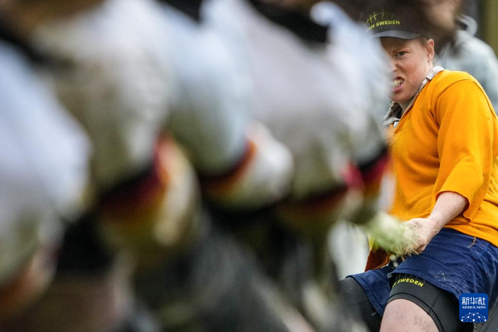 8月10日,瑞典队队员(右)在比赛中。瑞典队最终获得季军。