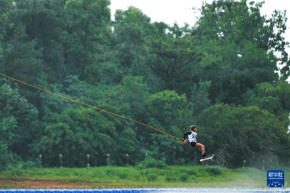 当日,2025年成都世运会女子索道滑水决赛在三岔湖桃花岛赛场举行。
