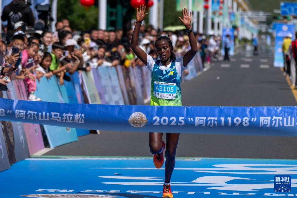 8月10日,埃塞俄比亚选手古塔在比赛中撞线。她以2小时43分00秒的成绩获得女子全程马拉松冠军。