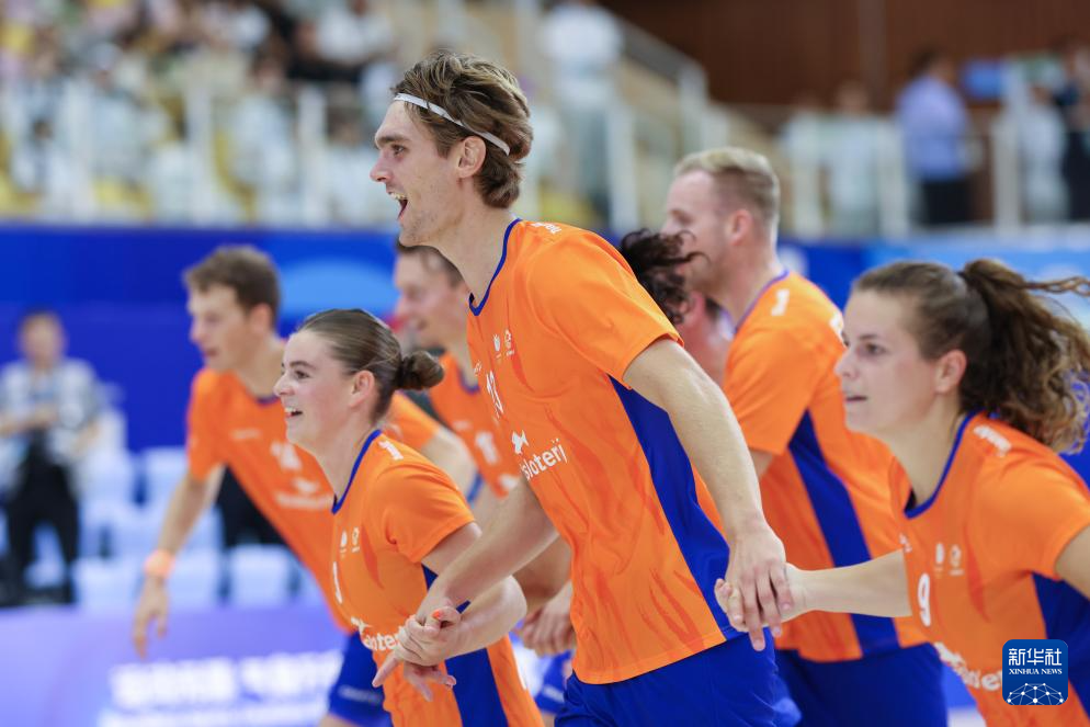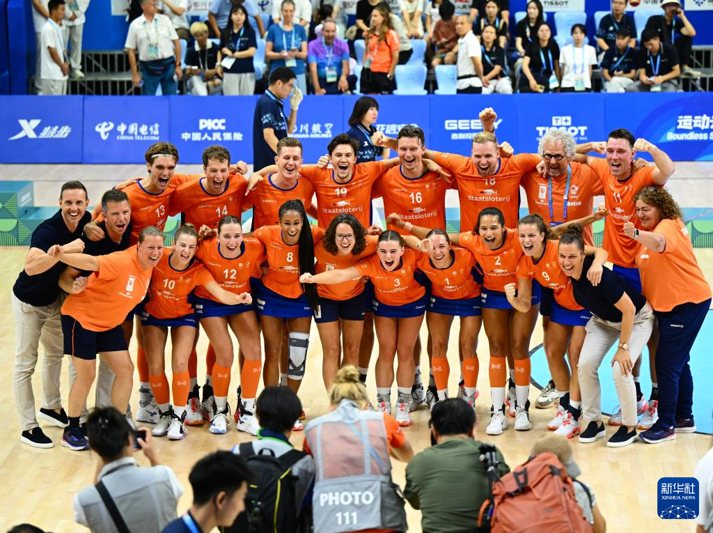 当日,在2025年成都世运会荷球混合团体赛金牌赛中,荷兰队战胜比利时队,夺得冠军。