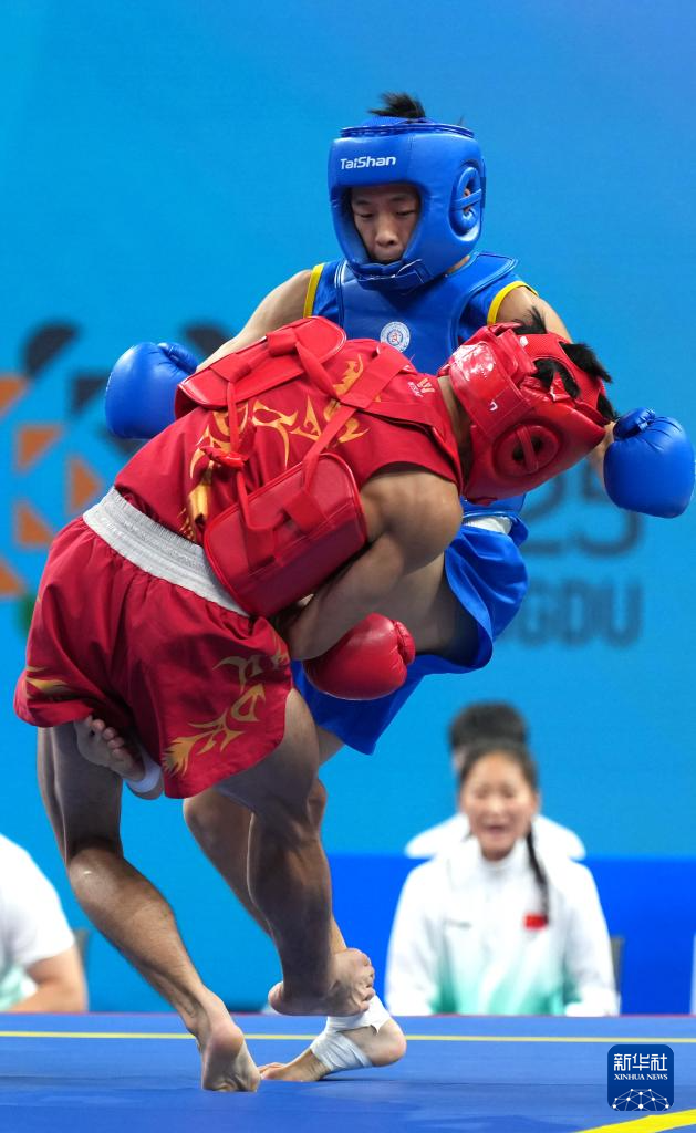 当日,在2025年成都世运会武术男子散打56公斤金牌赛中,中国选手唐思硕战胜越南选手杜辉煌(音),夺得冠军。