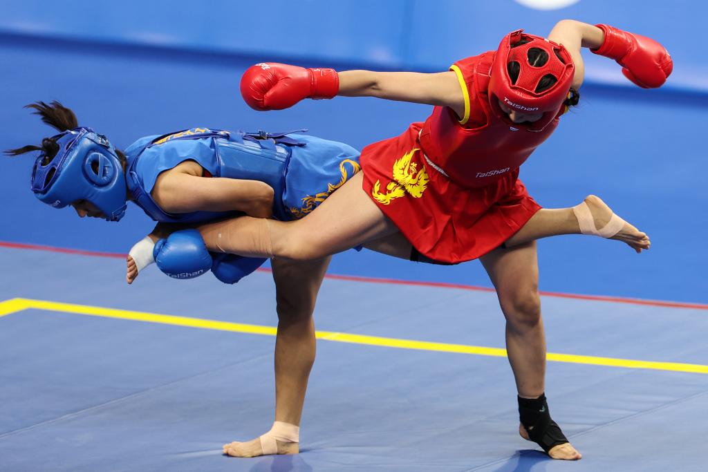在男子组方面,中国队选手唐思硕在56公斤级决赛中仅用一个回合,便以12分优胜战胜越南运动员杜辉黄,为东道主斩获当晚第三枚金牌。加上此前结束的套路比赛中的2金,中国队在武术项目中共收获5金1银。