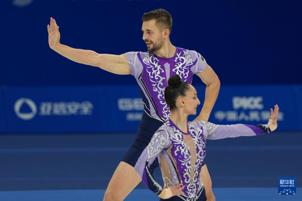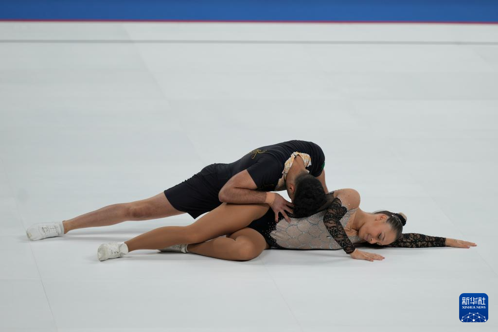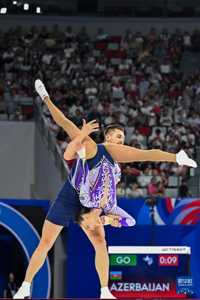 8月15日,阿塞拜疆组合多尔马托夫(下)/马迪娜在比赛中。最终,他们获得亚军。