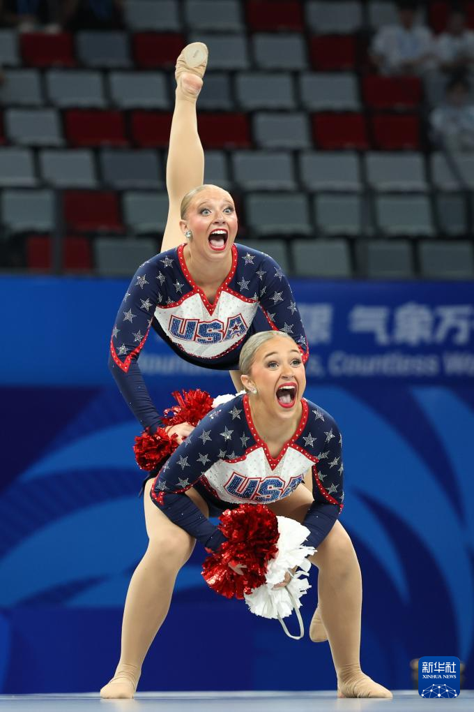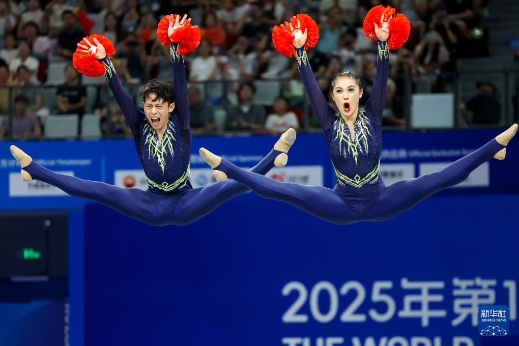当日,2025年成都世运会啦啦操双人花球半决赛第一轮举行。