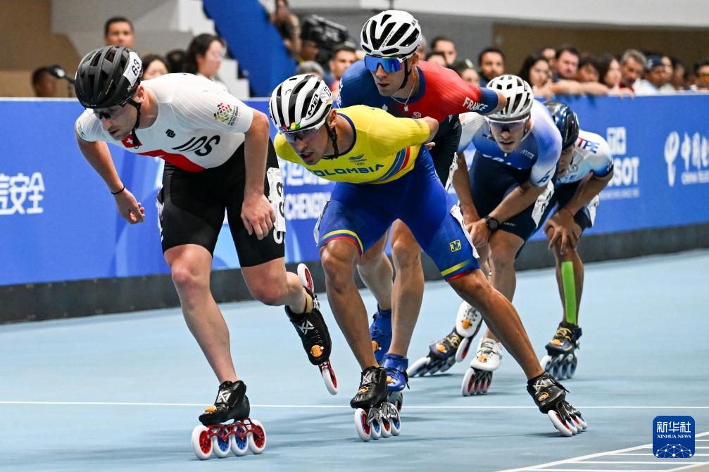 当日,在2025年成都世运会速度轮滑场地赛男子(10000米淘汰)决赛中,哥伦比亚选手曼蒂利亚·皮尼利亚获得冠军,瑞士选手文格尔获得亚军,法国选手费里埃获得季军。