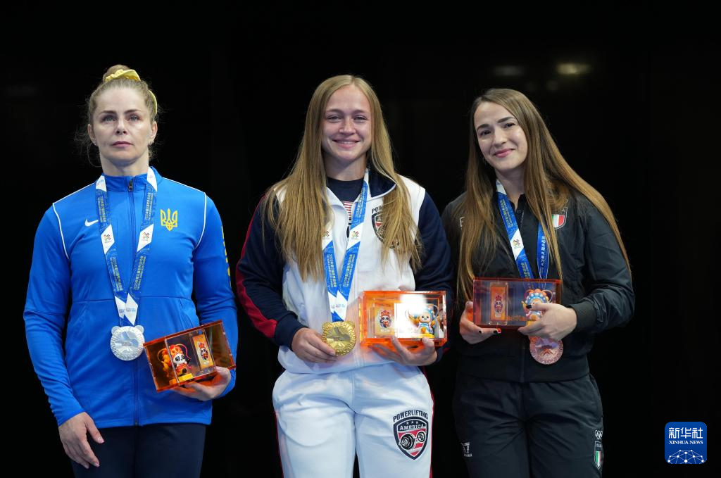 当日,在2025年成都世运会力量举女子装备中量级决赛中,美国选手拉沙佩勒获得冠军,乌克兰选手拉里莎获得亚军,意大利选手切尔尼利亚罗获得季军。
