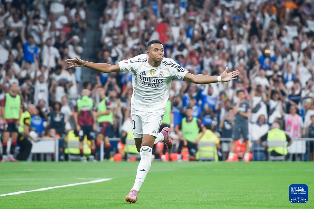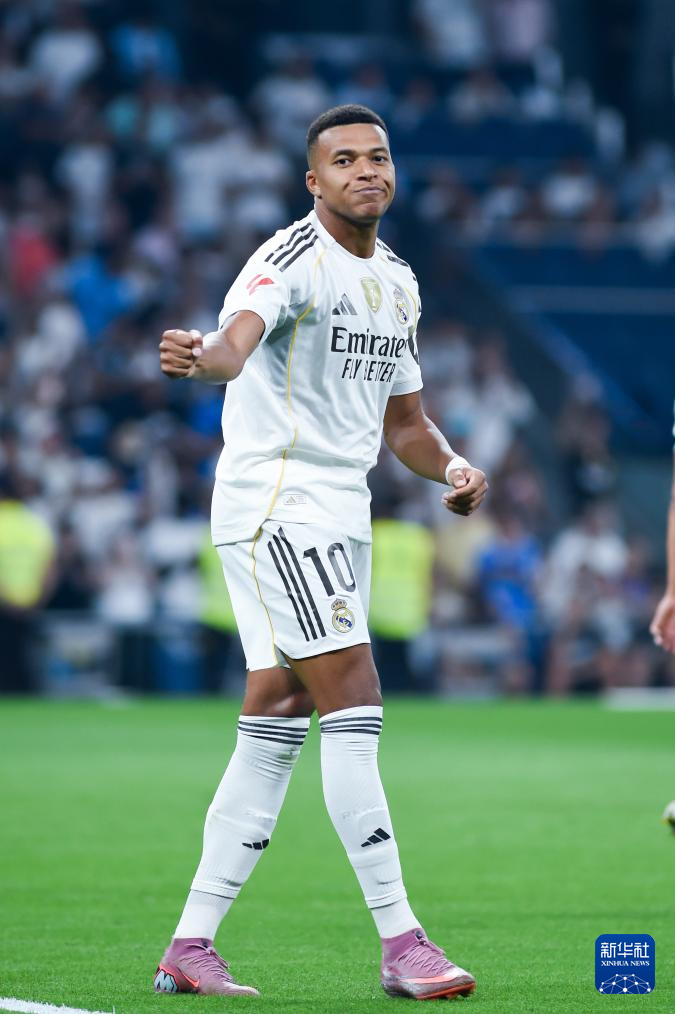 8月19日,皇家马德里队球员姆巴佩庆祝进球。