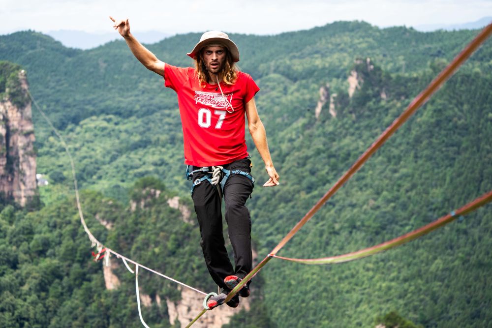 比赛时,选手们系上安全绳后,从悬崖边起步,走上一指多宽、约2毫米厚的扁带。按照比赛规则,选手需在3次掉落次数内完成1000米距离行走,用时最短者获胜。