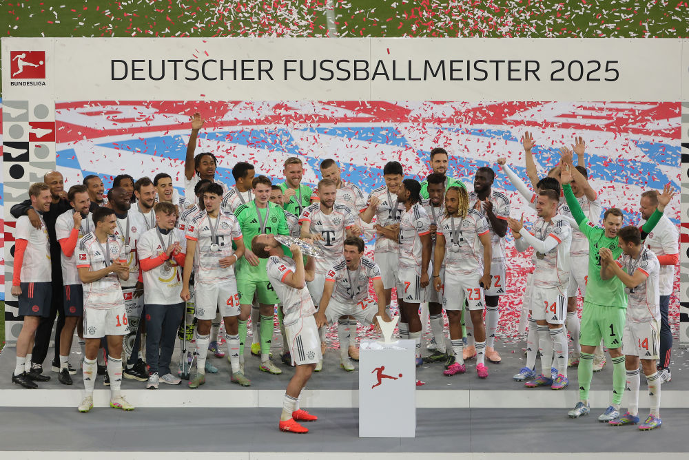5月10日,拜仁慕尼黑队举行颁奖仪式庆祝夺得历史第33个德甲冠军。新华社发(菲利普·鲁伊兹摄)
