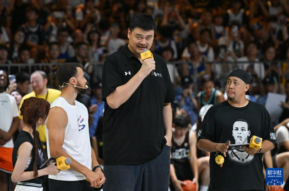 当日,姚明亮相在山城重庆举办的“库里训练营”活动,并观看学员比赛。