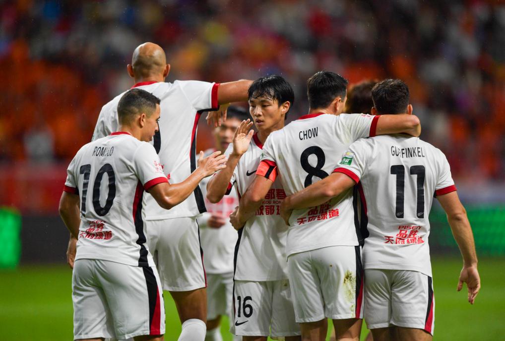 8月23日,成都蓉城队球员庆祝进球。新华社记者 陈欣波 摄