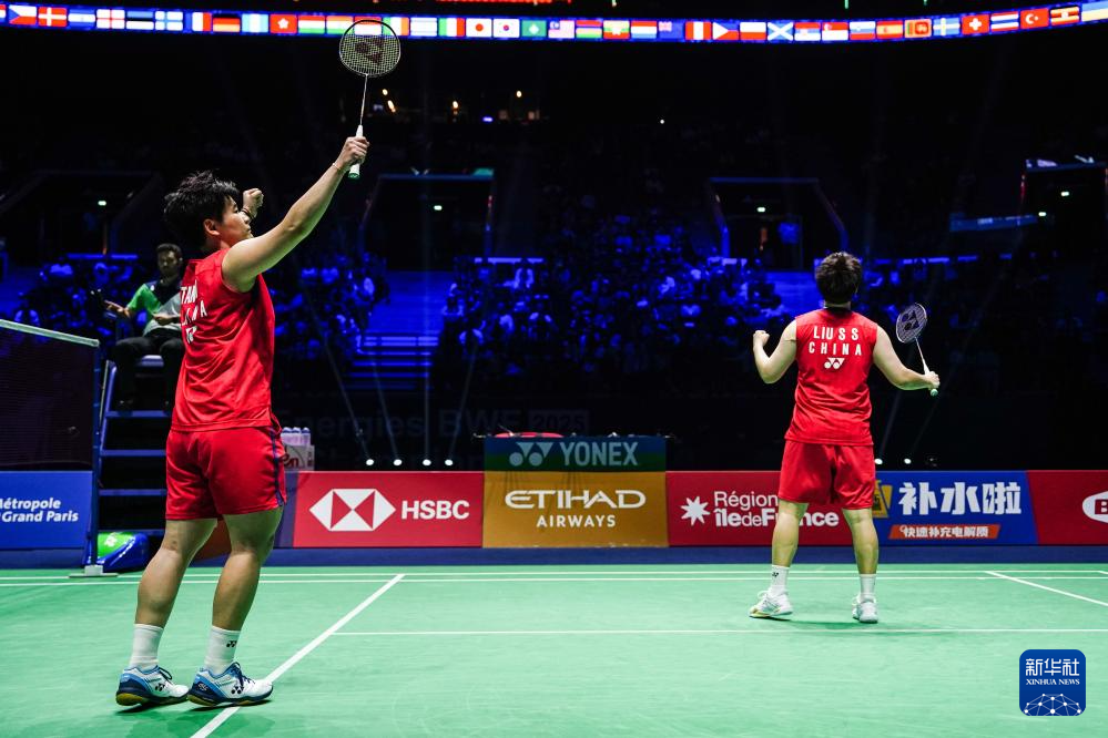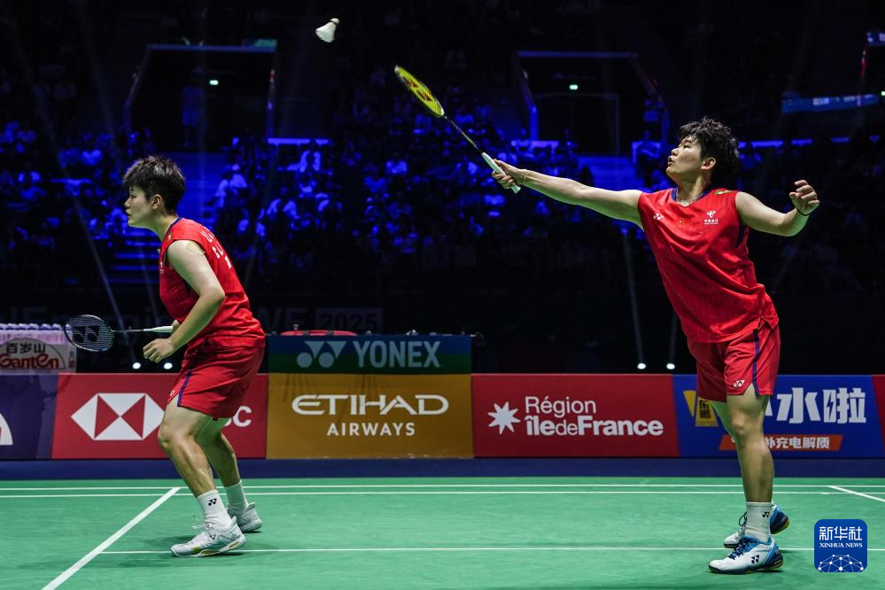 当日,在巴黎举行的2025年世界羽毛球锦标赛女双四分之一决赛中,中国组合刘圣书/谭宁2比1战胜另一对中国组合贾一凡/张殊贤,晋级四强。