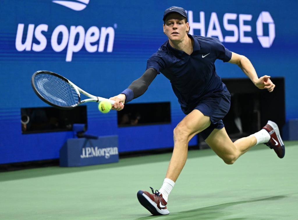 9月5日,辛纳在比赛中回球。新华社记者 李睿 摄