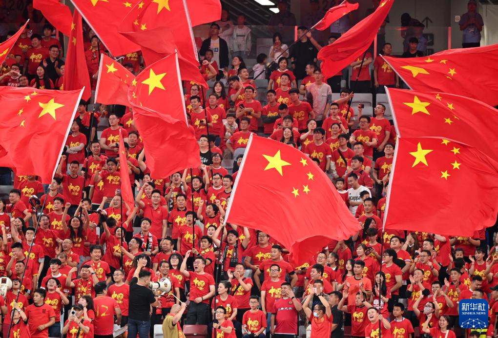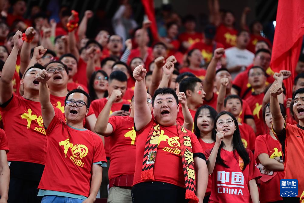 9月6日,球迷在看台为中国队加油助威。