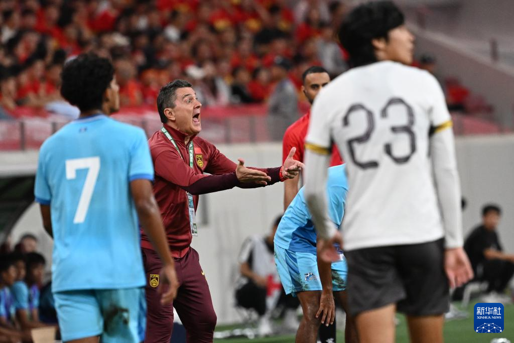 9月6日,中国队主教练安东尼奥·普切(左)在比赛中指挥。