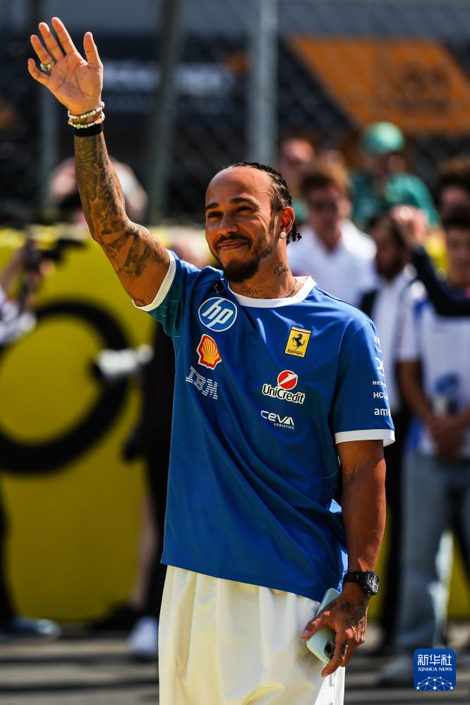 9月7日,法拉利车队英国车手汉密尔顿在比赛前向车迷挥手致意。