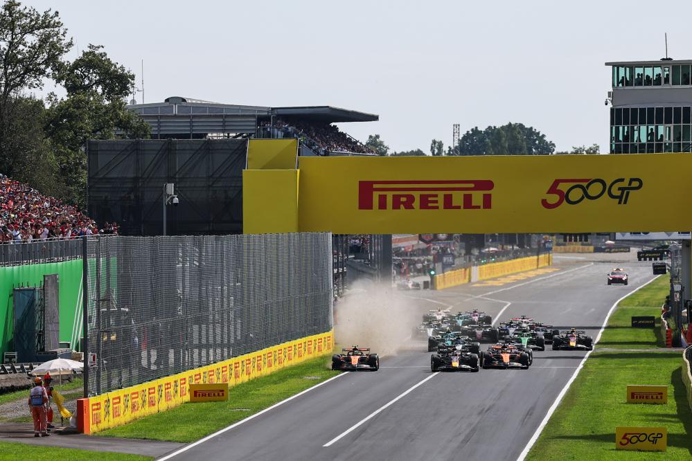 五盏红灯熄灭后,头排发车的维斯塔潘与诺里斯在第一个减速弯展开轮对轮角逐。维斯塔潘虽然保持领先,但由于在过弯时驶出了赛道,不得不把头名让与诺里斯。在他们身后,主场作战的法拉利车手勒克莱尔超越皮亚斯特里,引起现场观众一阵欢呼,但皮亚斯特里迅速夺回位置。