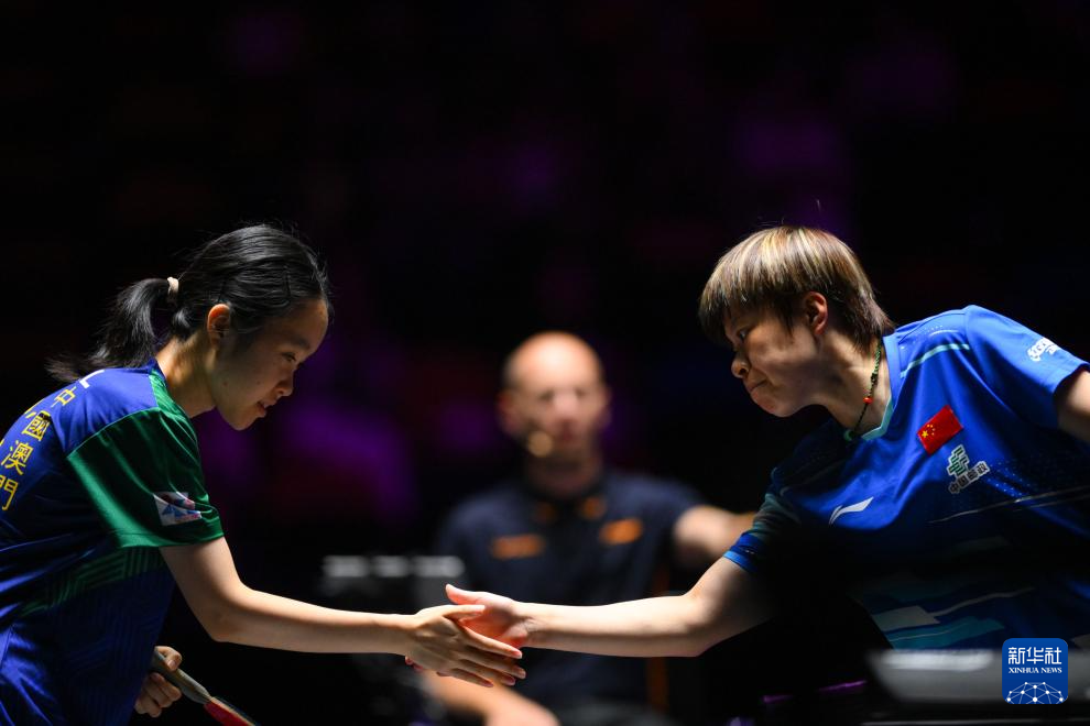 当日,在澳门东亚运动会体育馆进行的2025年世界乒乓球职业大联盟(WTT)澳门冠军赛女子单打首轮比赛中,中国选手王艺迪3比0战胜中国澳门选手关卓琳,晋级16强。