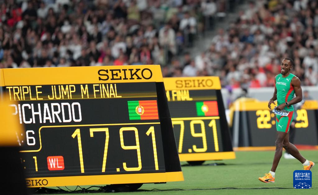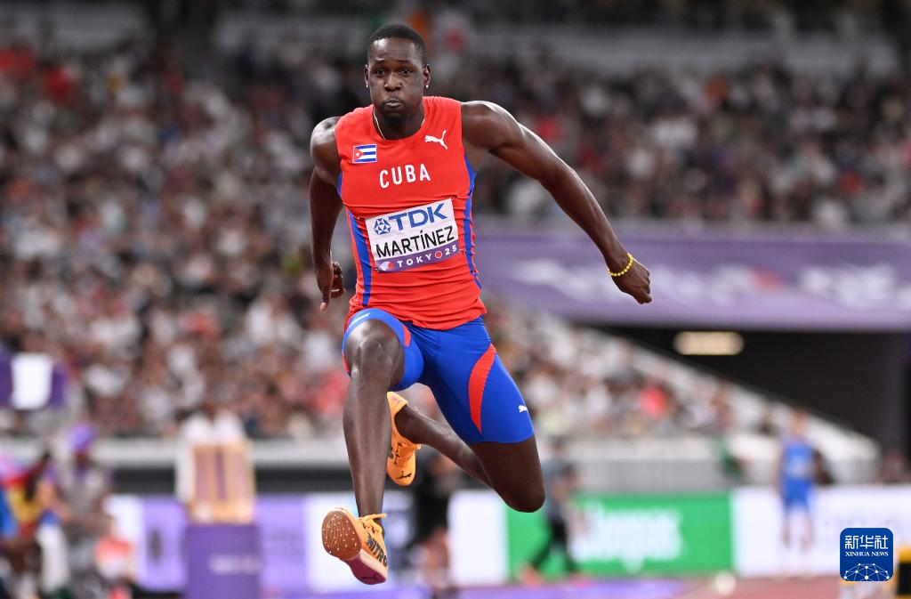 当日,2025年世界田径锦标赛男子三级跳远决赛在日本东京举行。