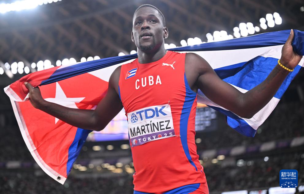 9月19日,季军古巴选手马丁内斯在比赛后庆祝。