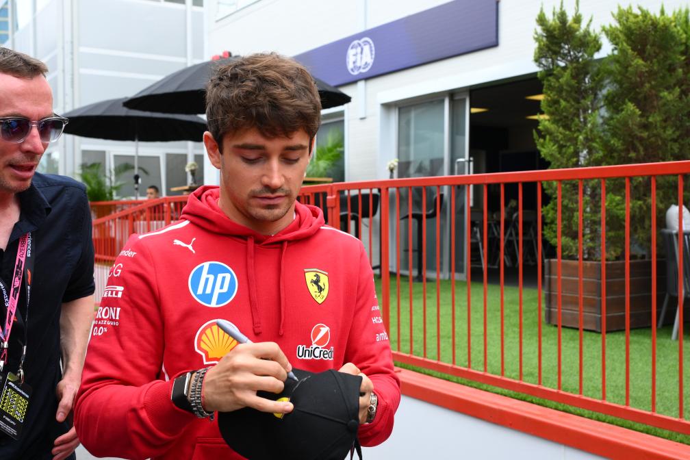 9月19日,法拉利车队摩纳哥车手勒克莱尔在练习赛前为车迷签名。新华社发(巴巴耶夫摄)