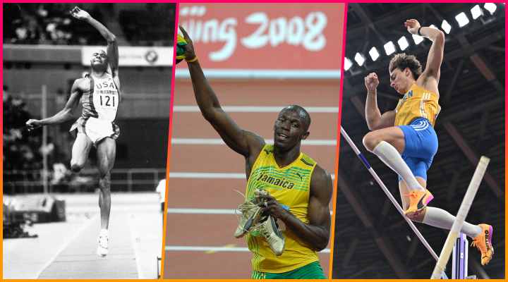 拼版照片:从左至右依次为鲍威尔在比赛中、博尔特在北京奥运会男子100米决赛后、杜普兰蒂斯在2025年世界田径锦标赛男子撑杆跳高决赛中。新华社记者戚恒、宋彦桦等摄
