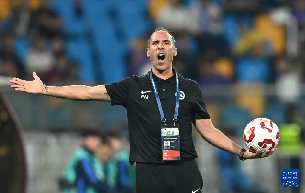 9月21日,深圳新鹏城队主教练穆尼奥斯在比赛中向边裁申请球队球权。