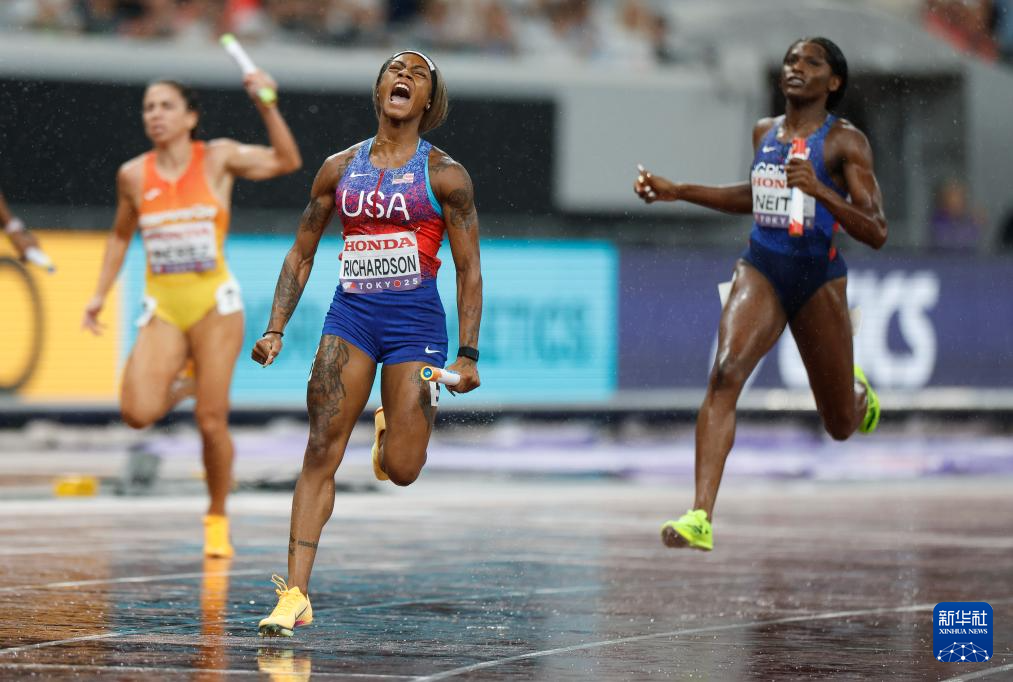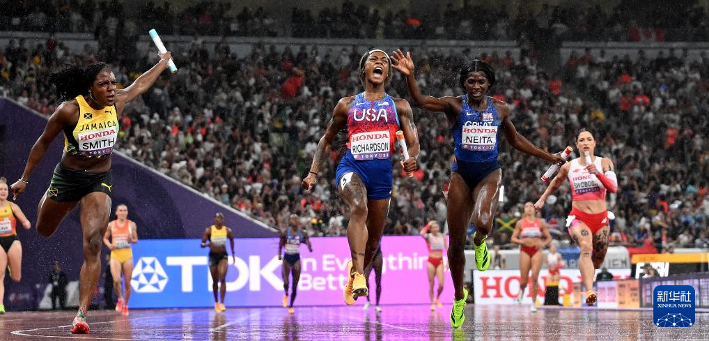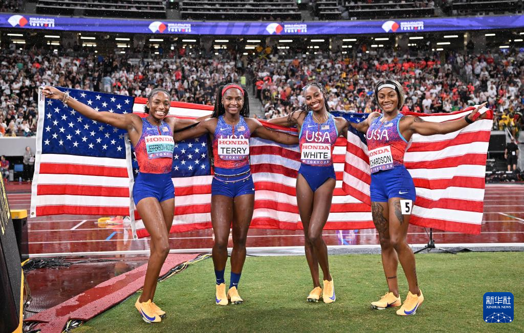 当日,2025年世界田径锦标赛女子4x100米接力决赛在日本东京举行。