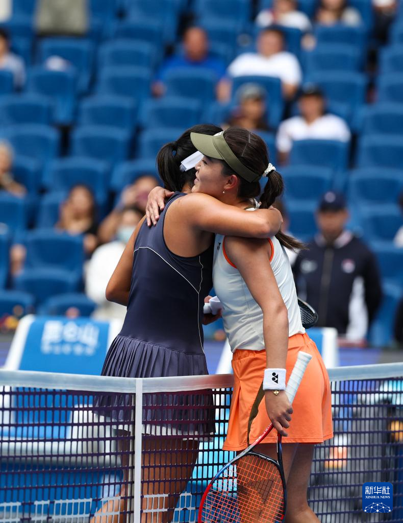 9月25日,朱琳(右)和内岛萌夏在赛后拥抱致意。