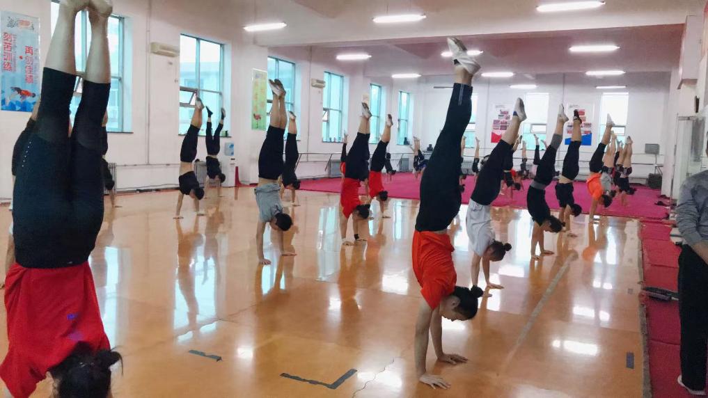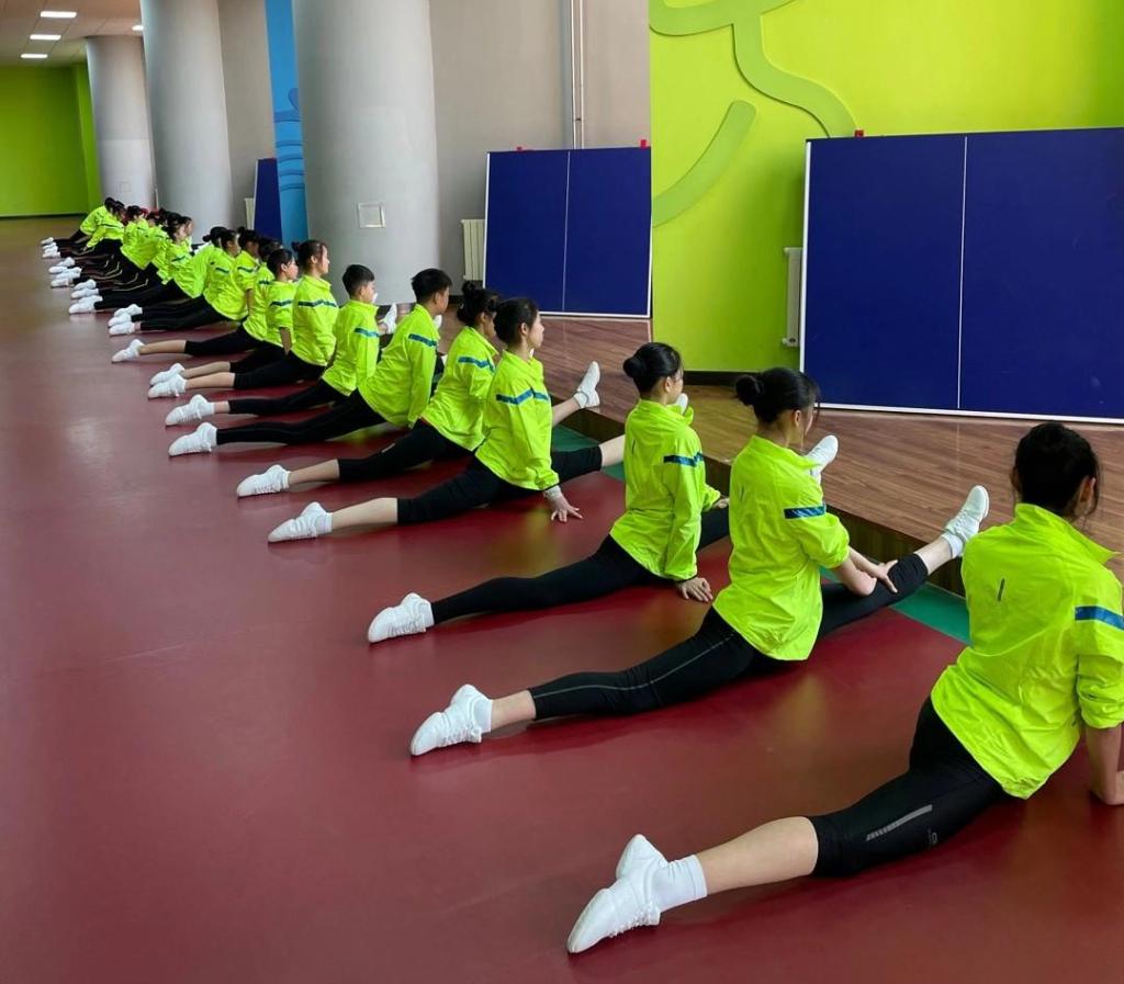 健美操队员们在训练中。