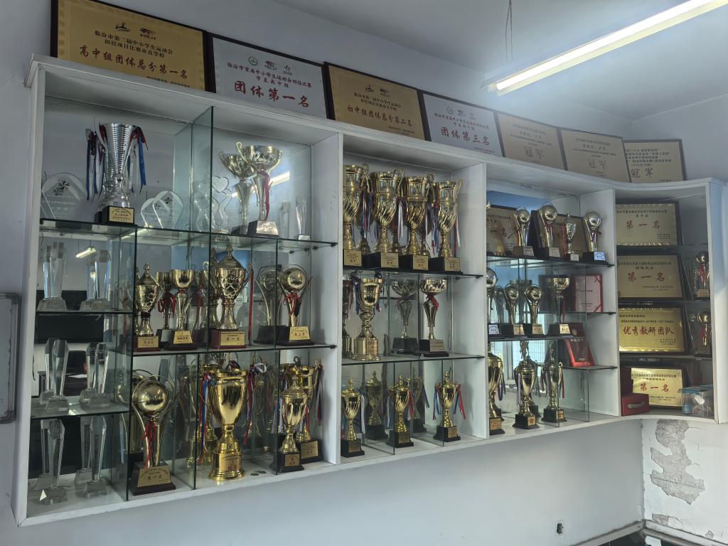 图为临汾三中健美操队部分奖项展示。