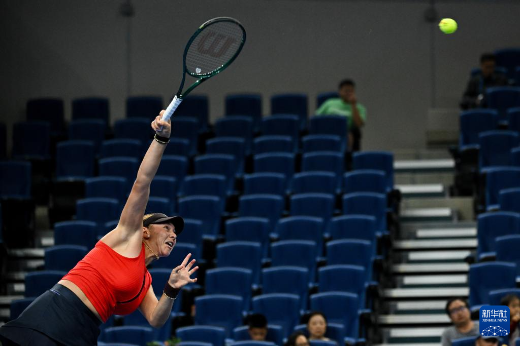 9月28日,阿尼西莫娃在比赛中发球。