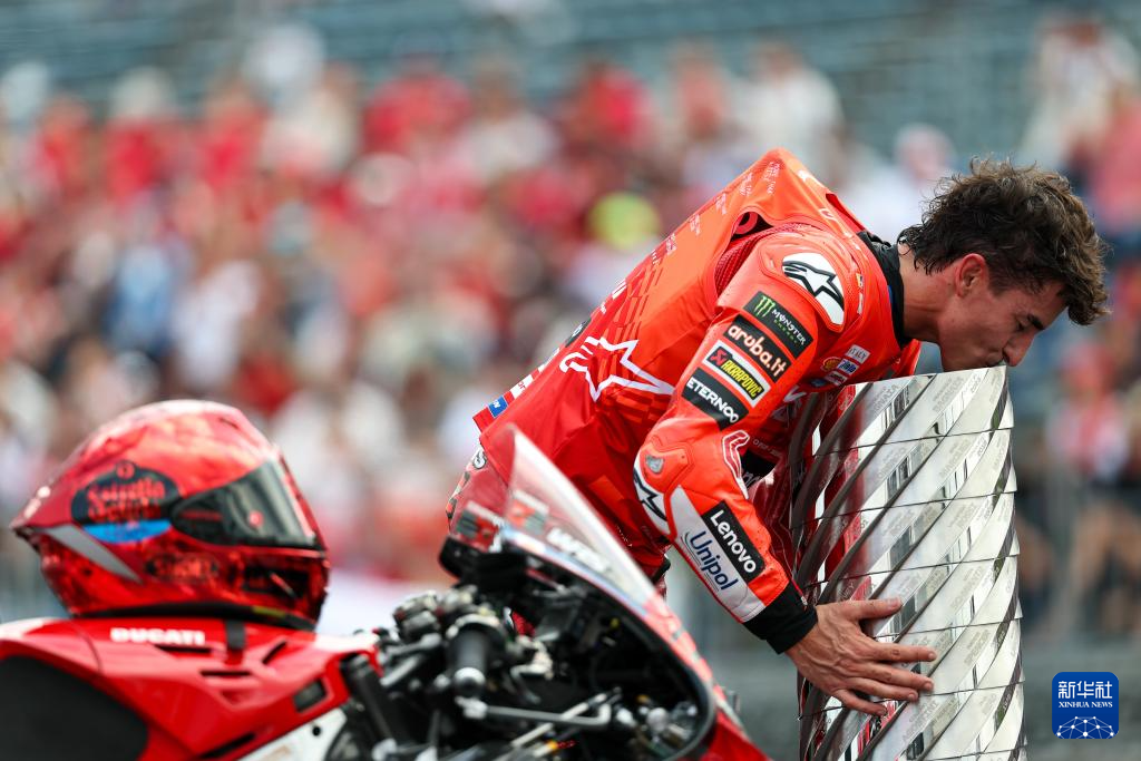 9月28日,本站亚军、赛季冠军杜卡迪车队西班牙车手马克·马奎斯在比赛后绕场庆祝。