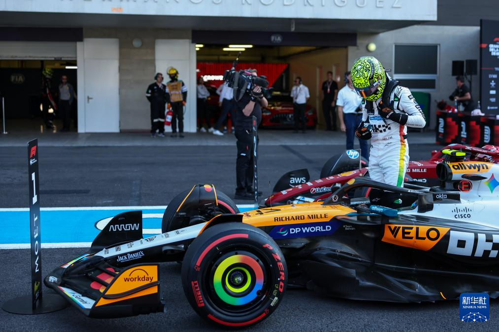 10月25日,迈凯伦车队英国车手诺里斯在比赛中。最终,他夺得杆位。