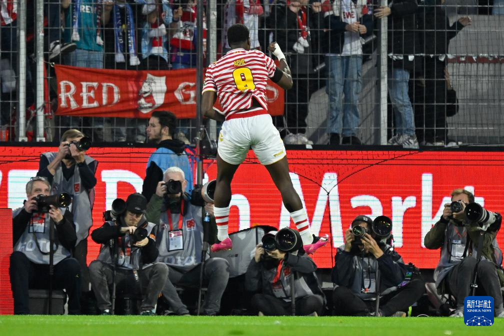 11月2日,科隆队球员阿赫(前)庆祝得分。