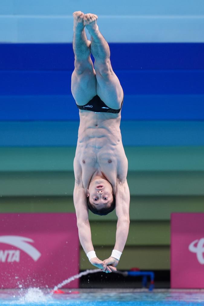 11月3日,山东队选手练俊杰在男子三米板比赛中。当日,第十五届全国运动会跳水男子团体赛在广州举行。新华社记者 杜宇 摄
