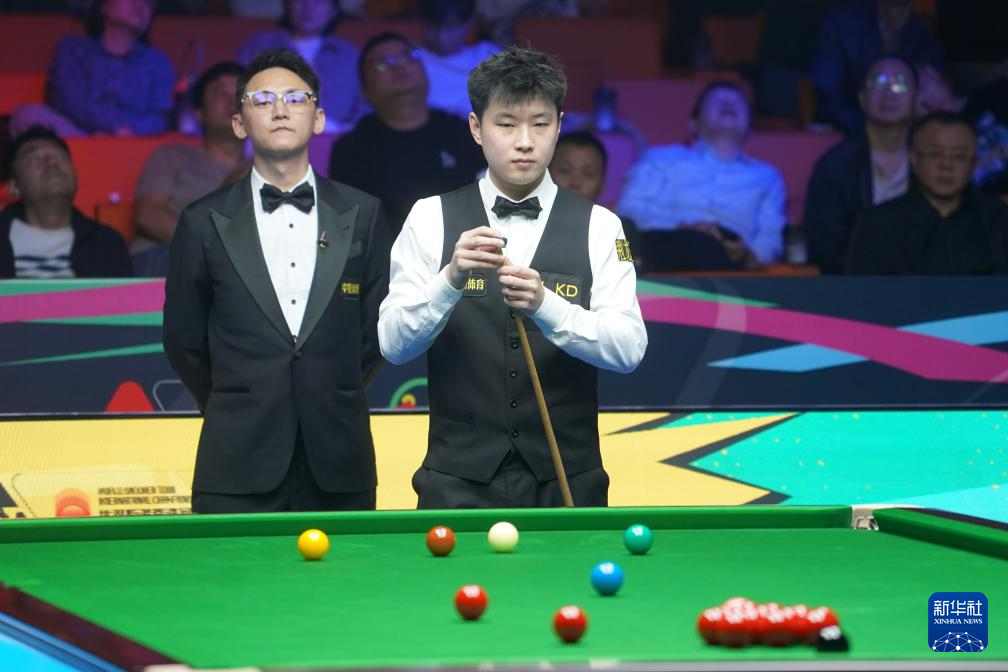11月6日,赵心童(右)在比赛中。