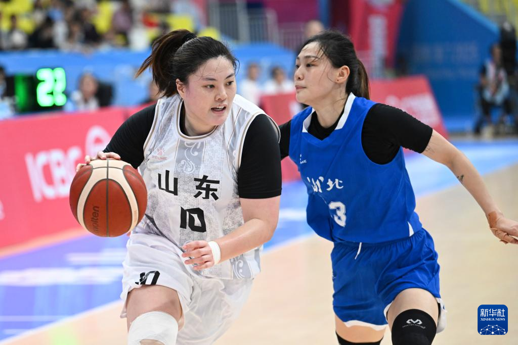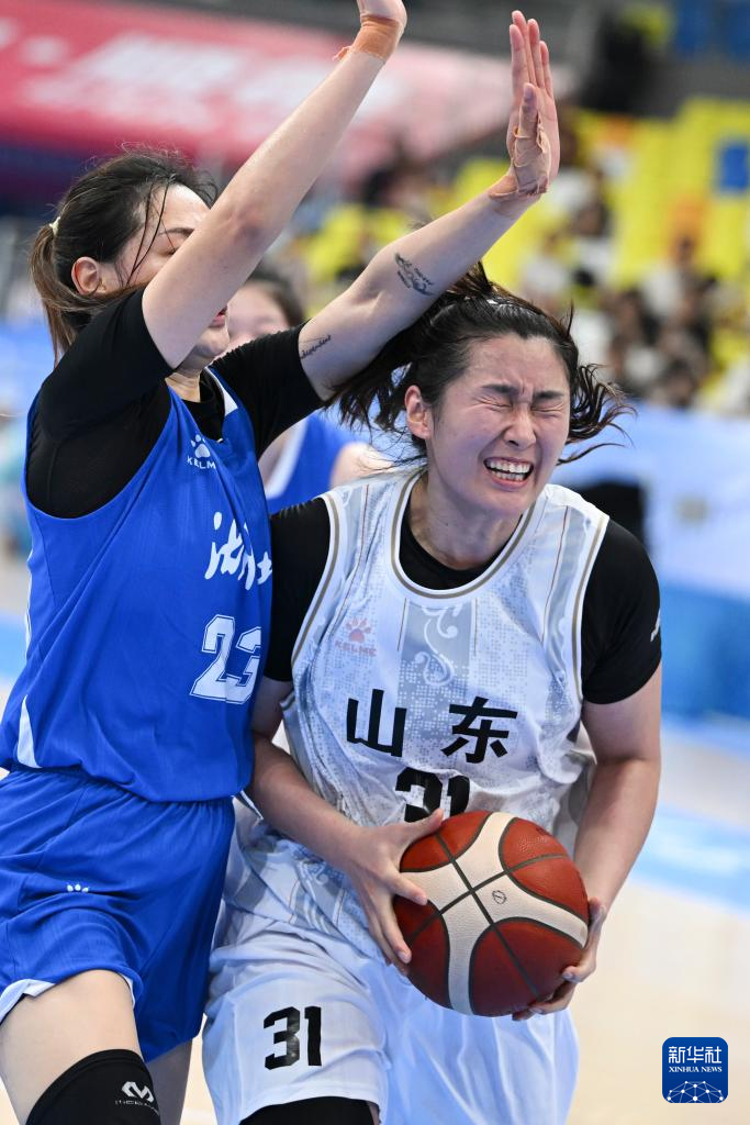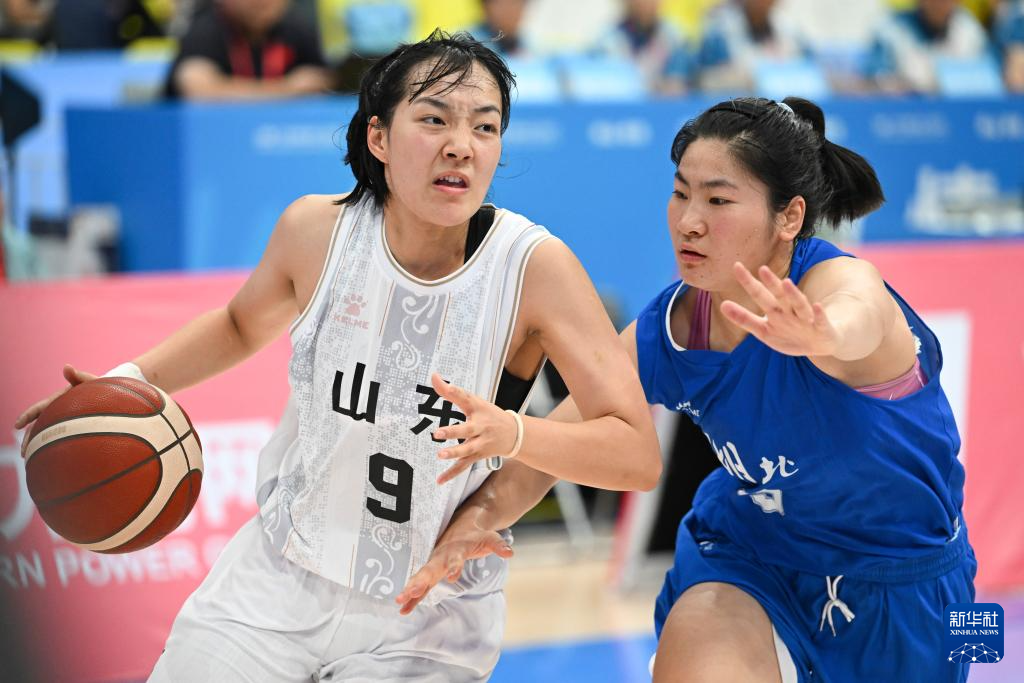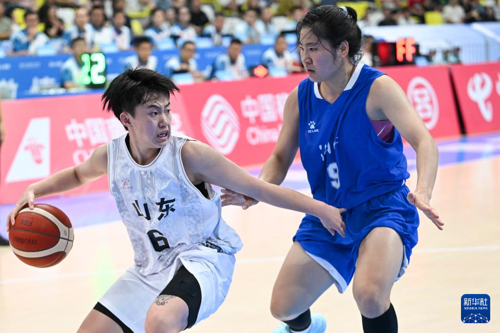 11月8日,山东队球员于嘉芮(右)在比赛中突破。