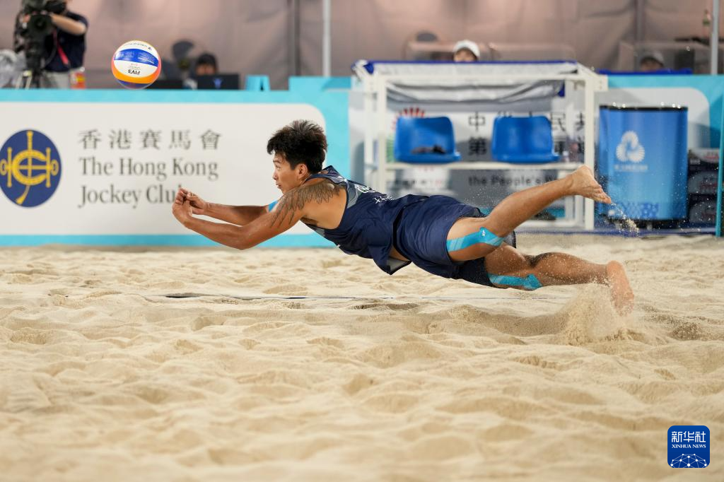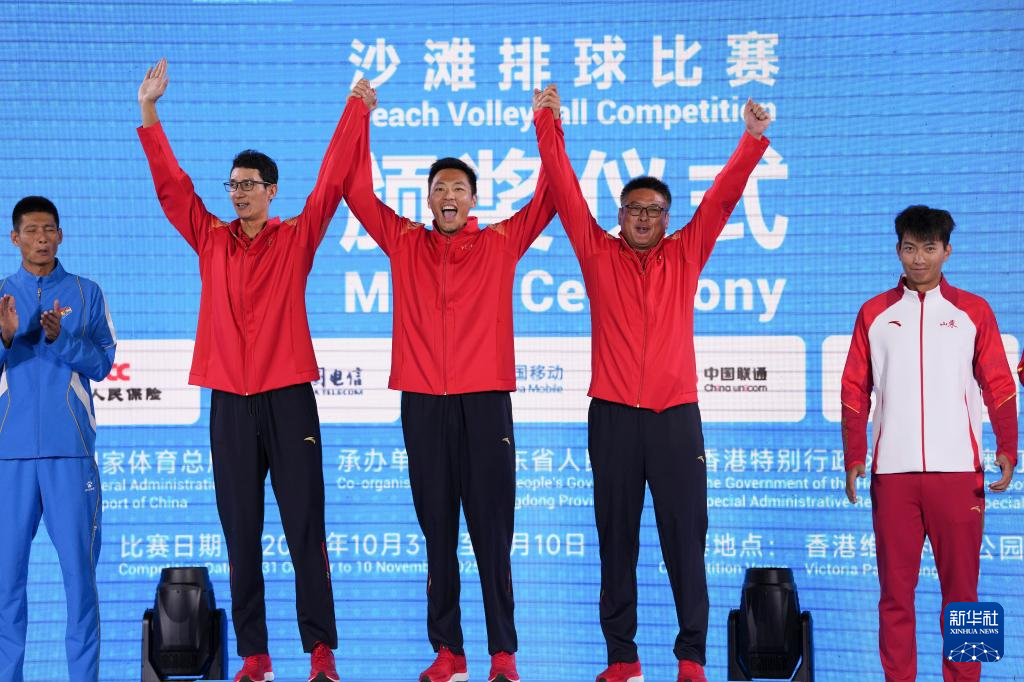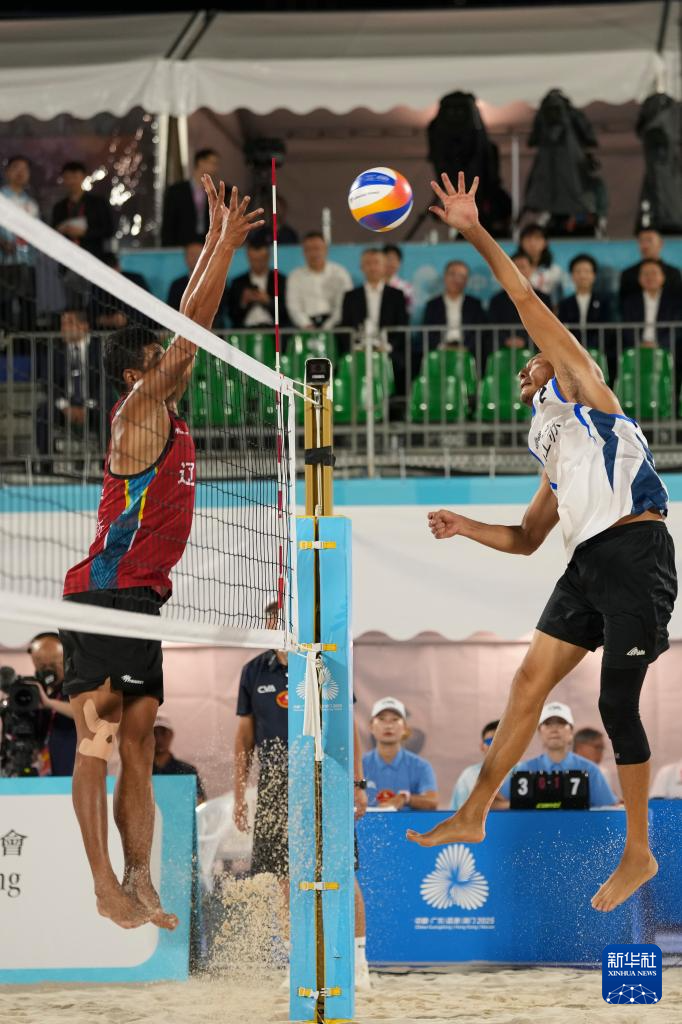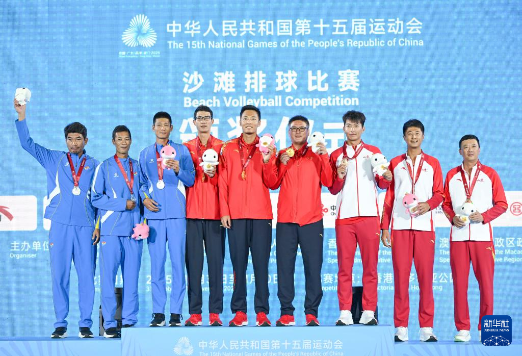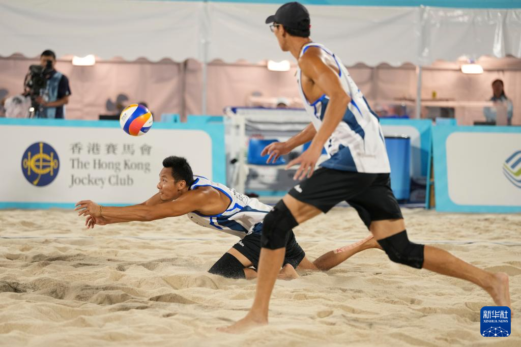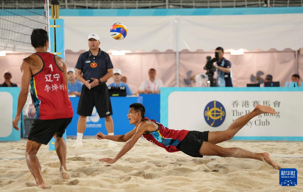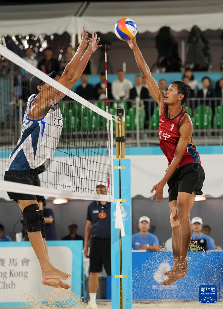 当日,第十五届全国运动会沙滩排球男子金牌赛和铜牌赛在香港举行。