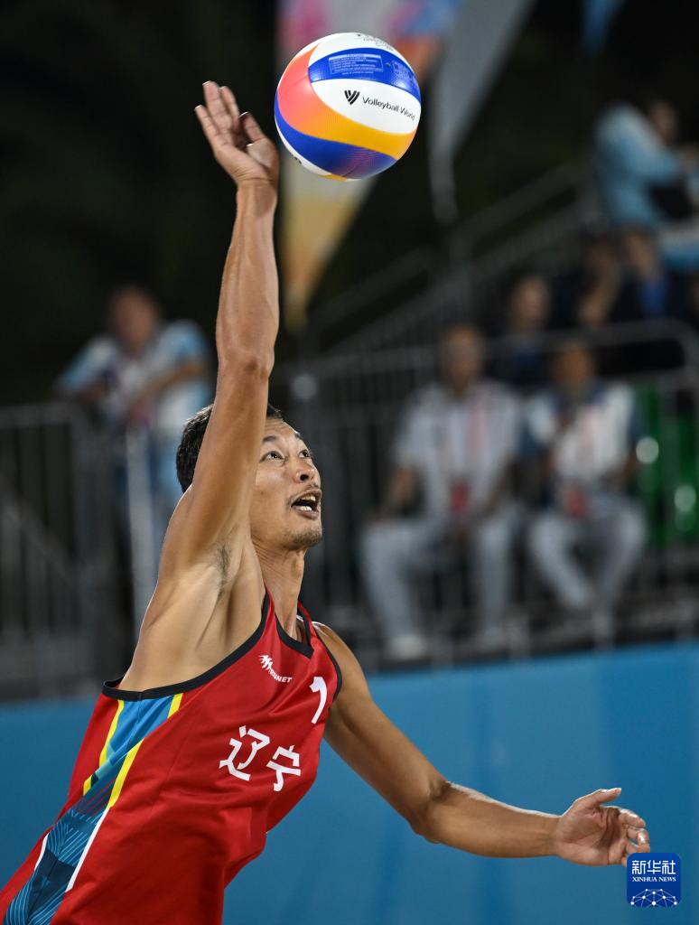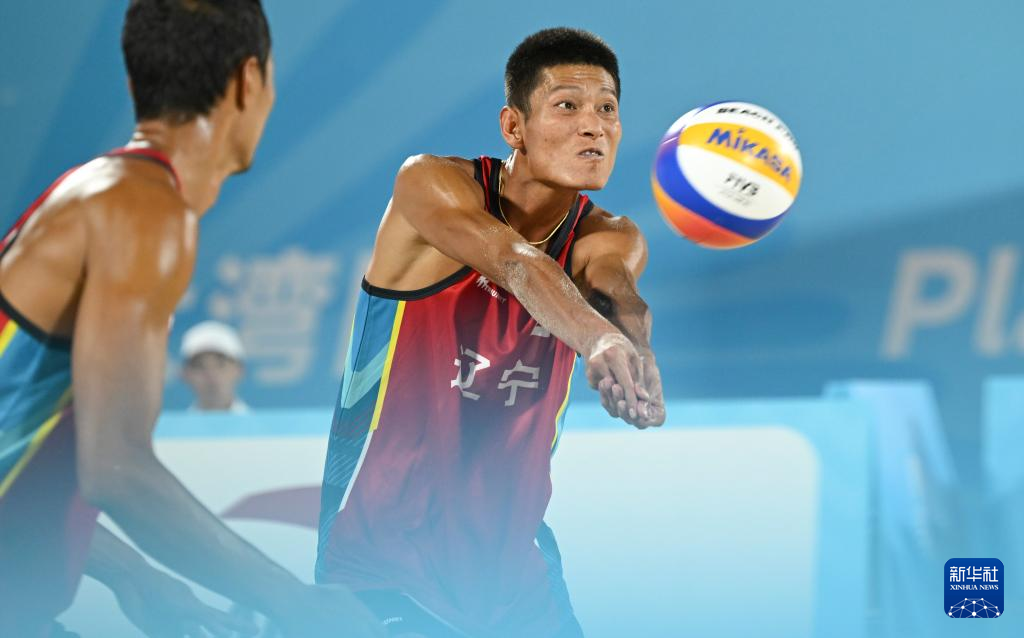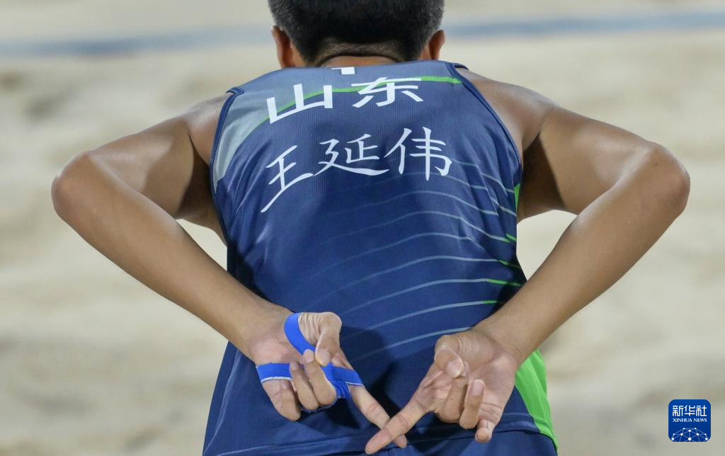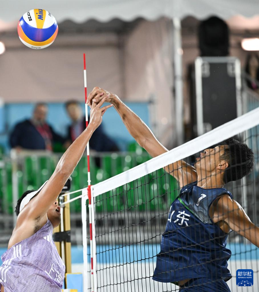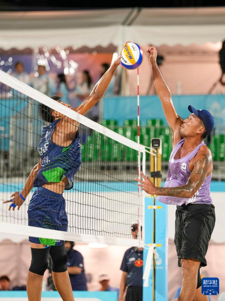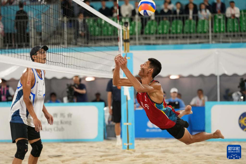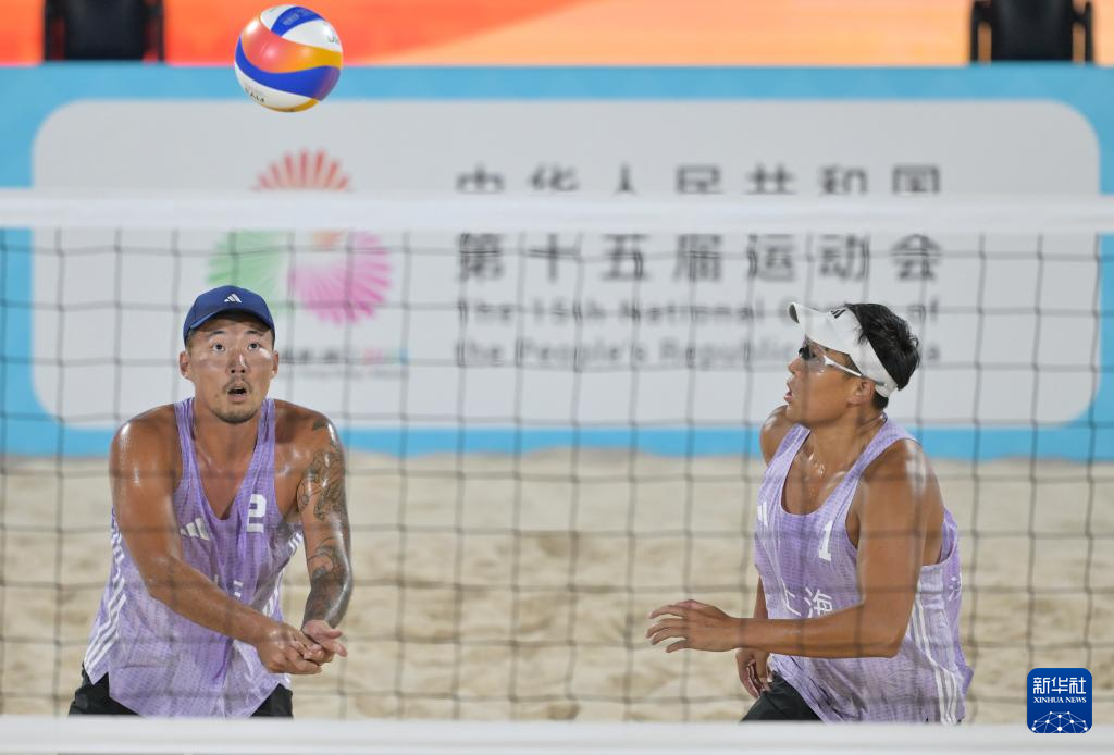 当日,第十五届全国运动会沙滩排球男子金牌赛和铜牌赛在香港举行。