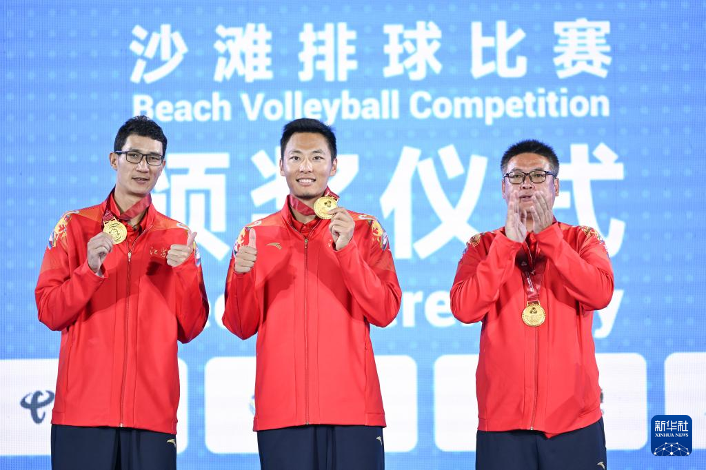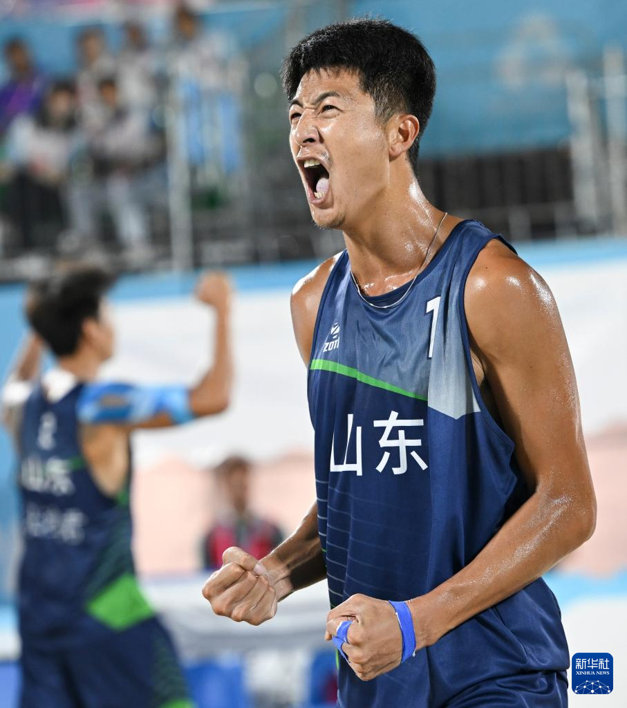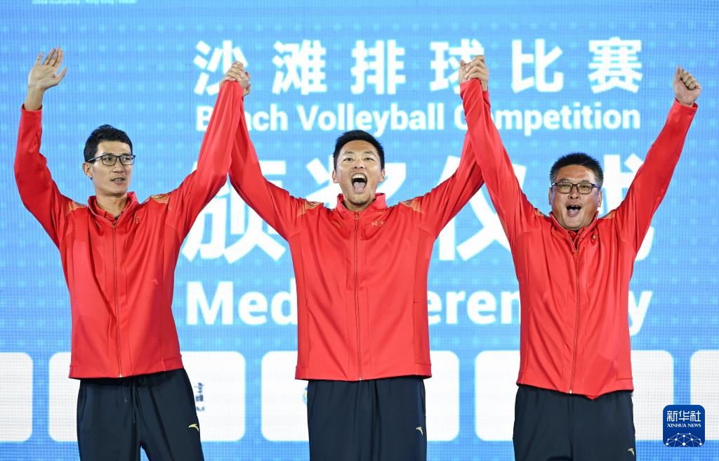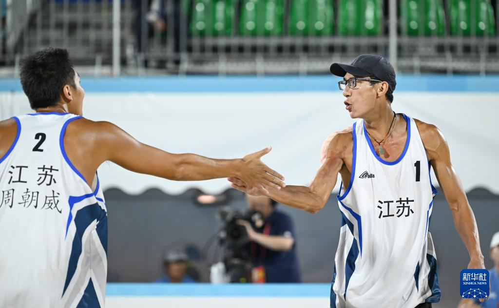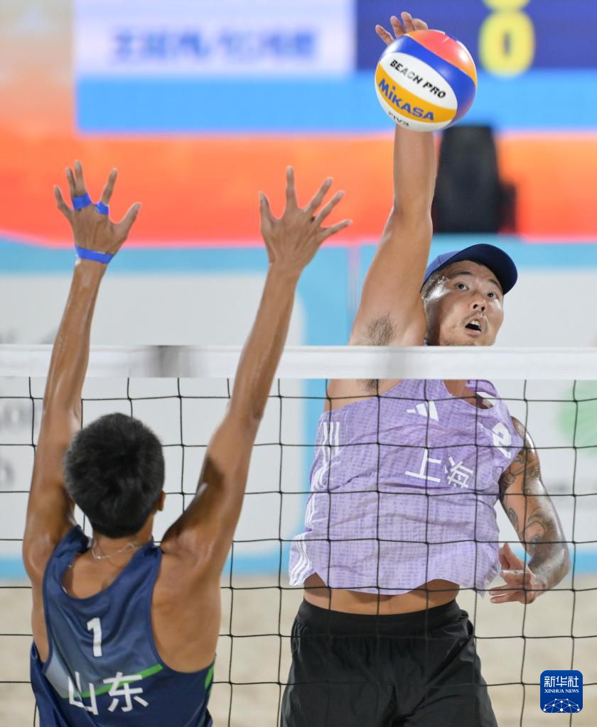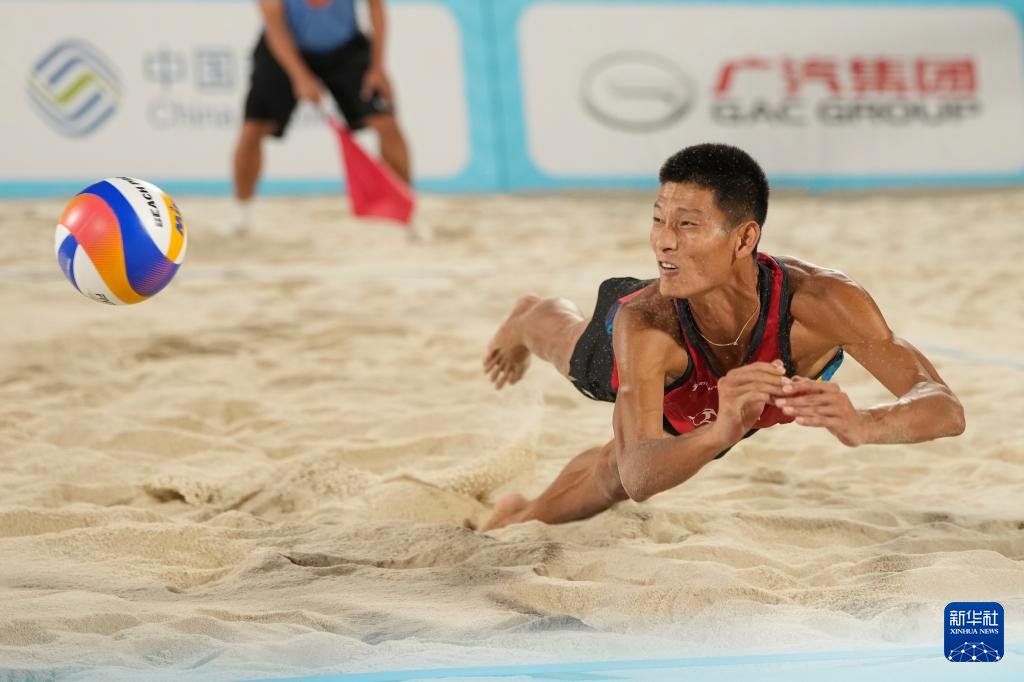 当日,第十五届全国运动会沙滩排球男子金牌赛和铜牌赛在香港举行。