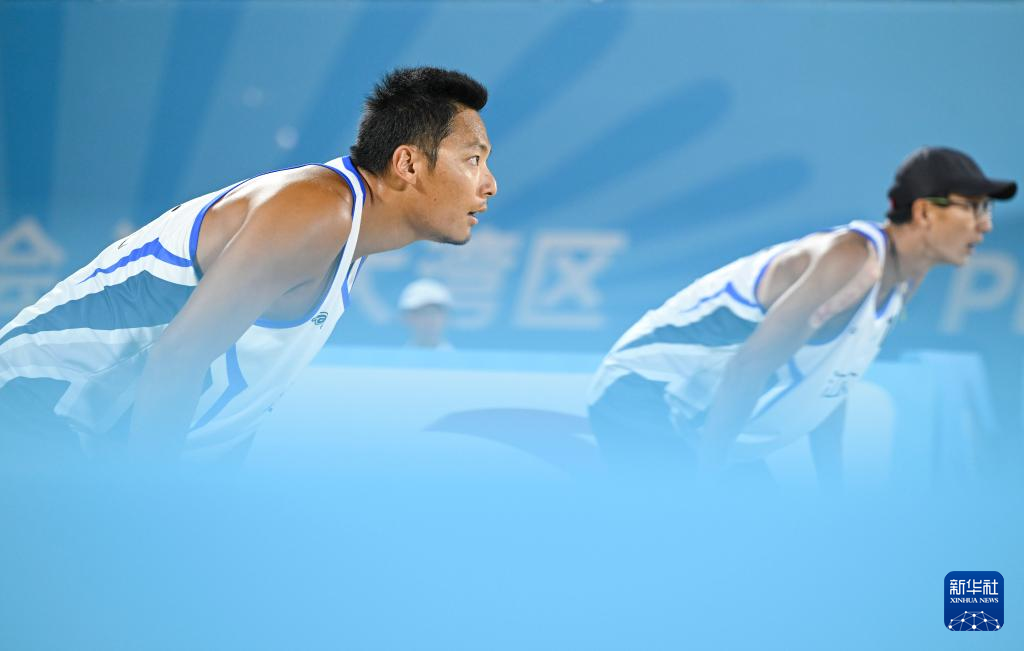 11月10日,山东队球员王延伟(右)在比赛中。他和队友杜鸿君在铜牌赛中2比0战胜上海队组合洪佳骏/李杰,获得季军。