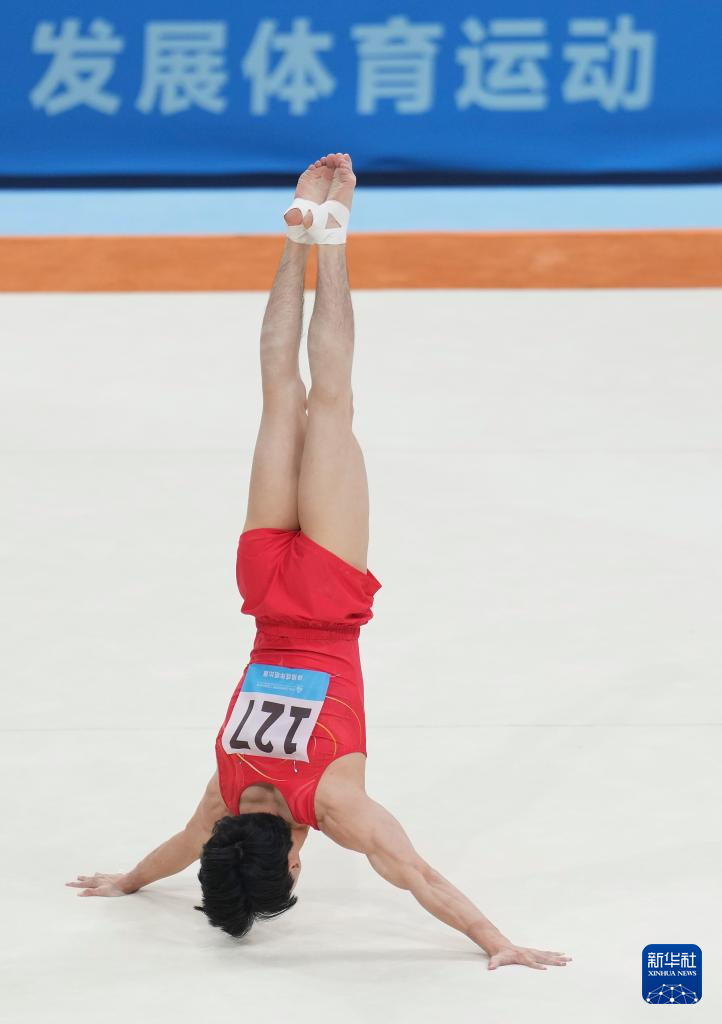 当日,第十五届全国运动会体操项目男子预赛第三场在肇庆举行。