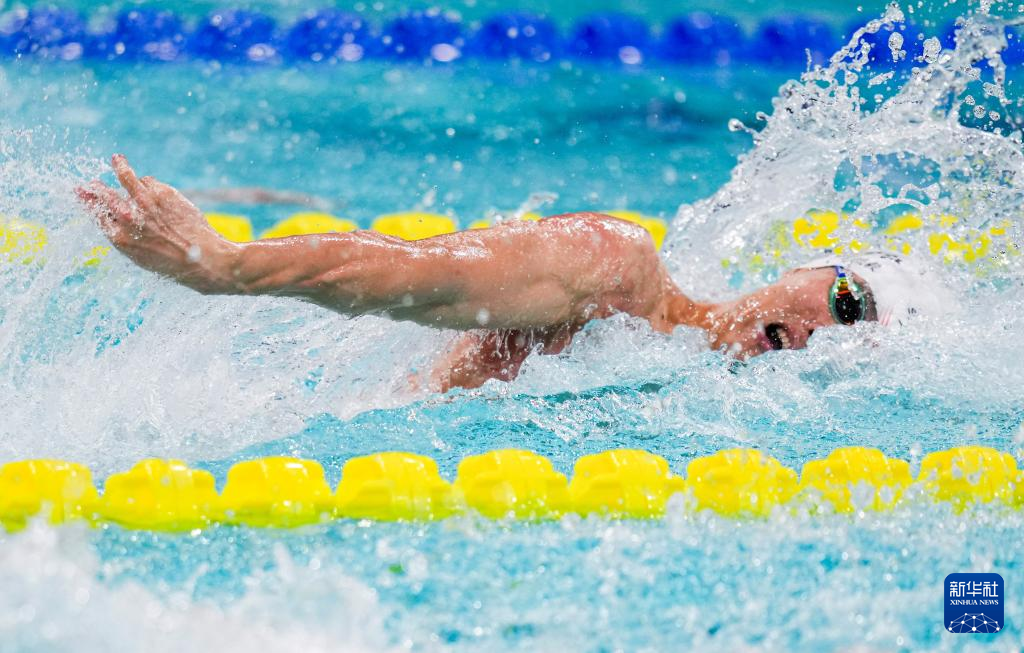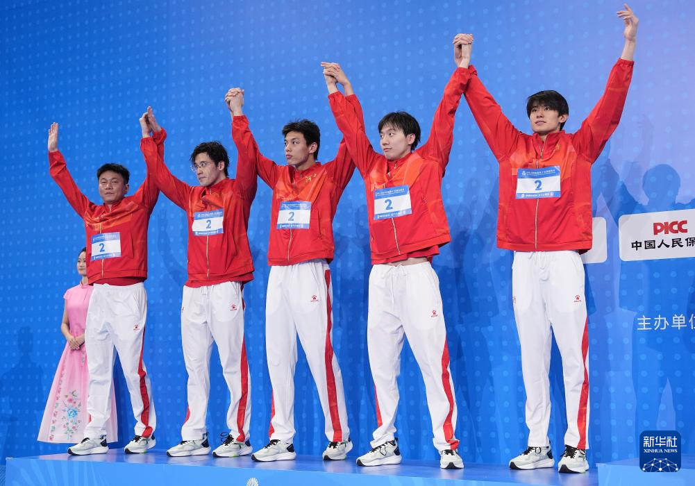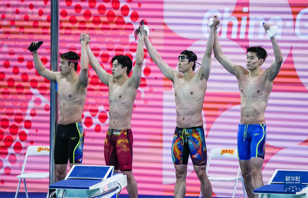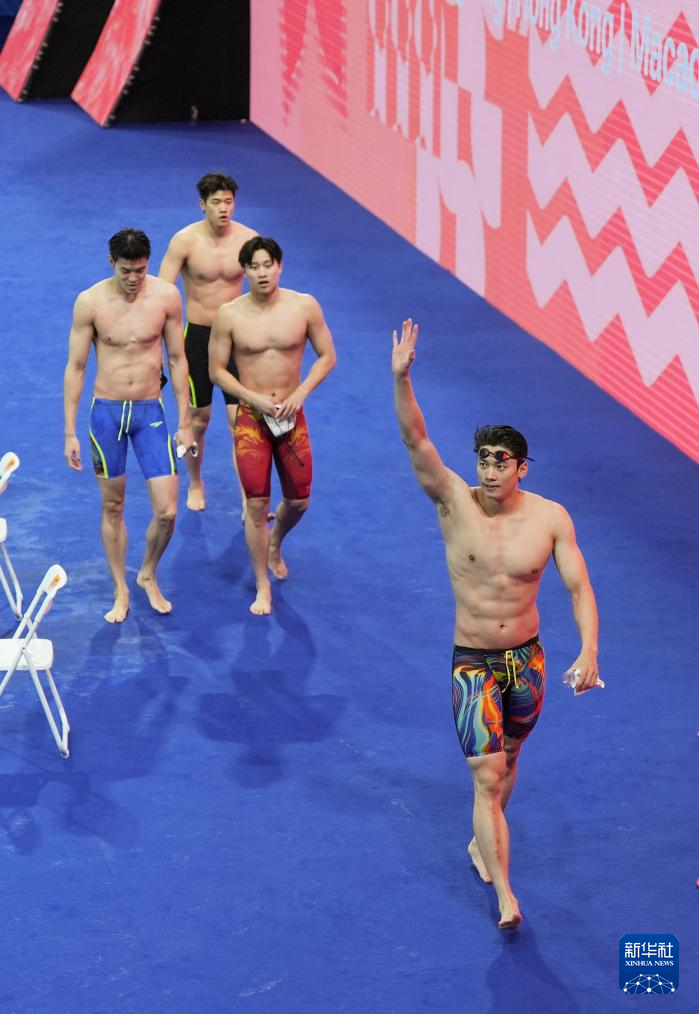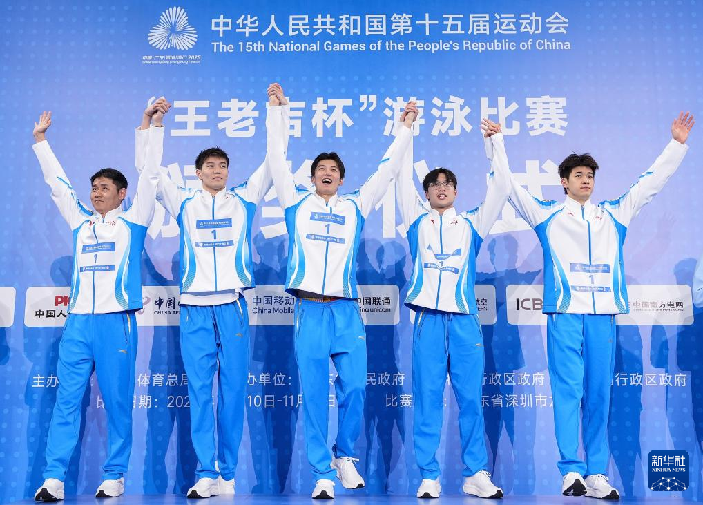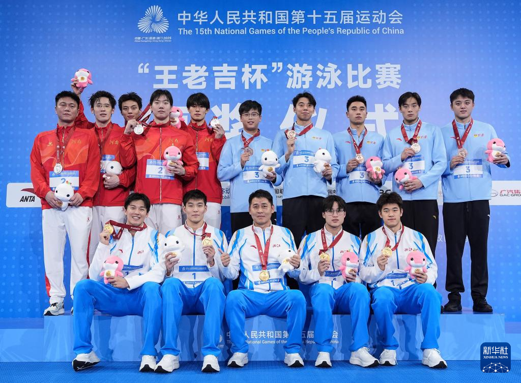 当日,第十五届全国运动会游泳项目男子4X100米自由泳接力决赛在深圳举行。