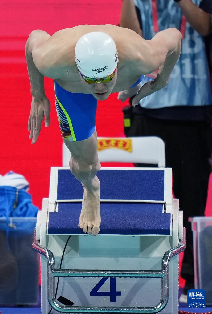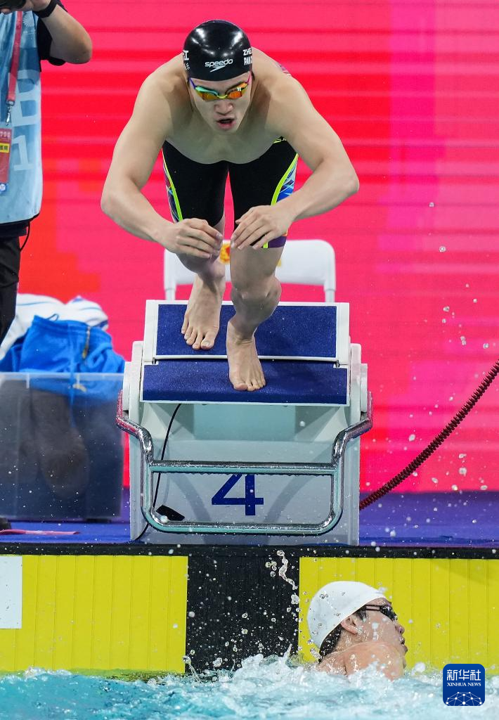 11月10日,浙江队选手潘展乐(上)在比赛中入水。最终,浙江队获得冠军。