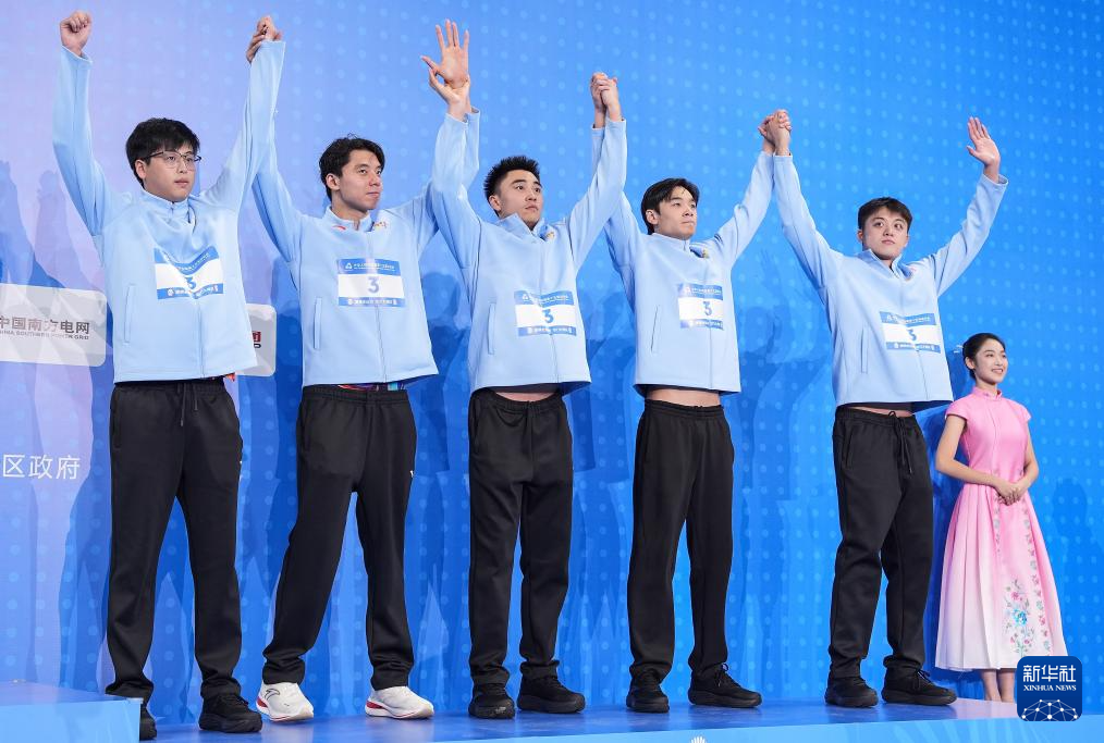 11月10日,浙江队选手何峻毅(左二)和队友在比赛前做准备。最终,浙江队获得冠军。