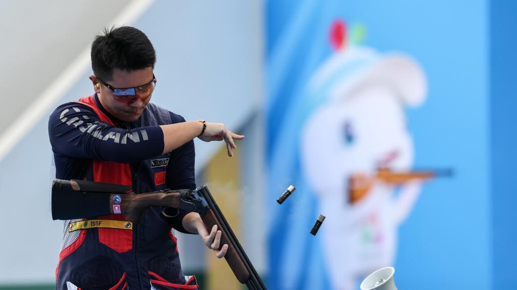 男子飞碟双向比赛中,两名江苏队选手张煜坤、杨蒋携手进入最后10枪的争夺。首次参加全运会的张煜坤稳住心态,以56中的成绩笑到最后。杨蒋和福建队选手吴亮亮分获银牌和铜牌。